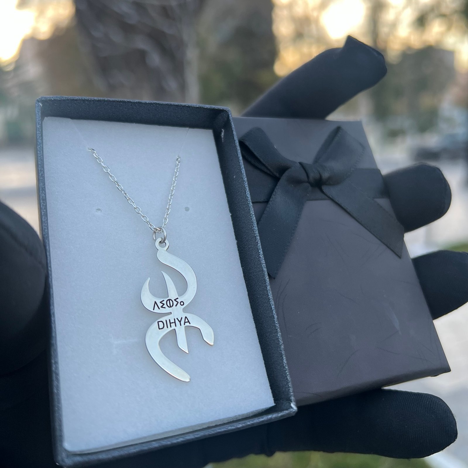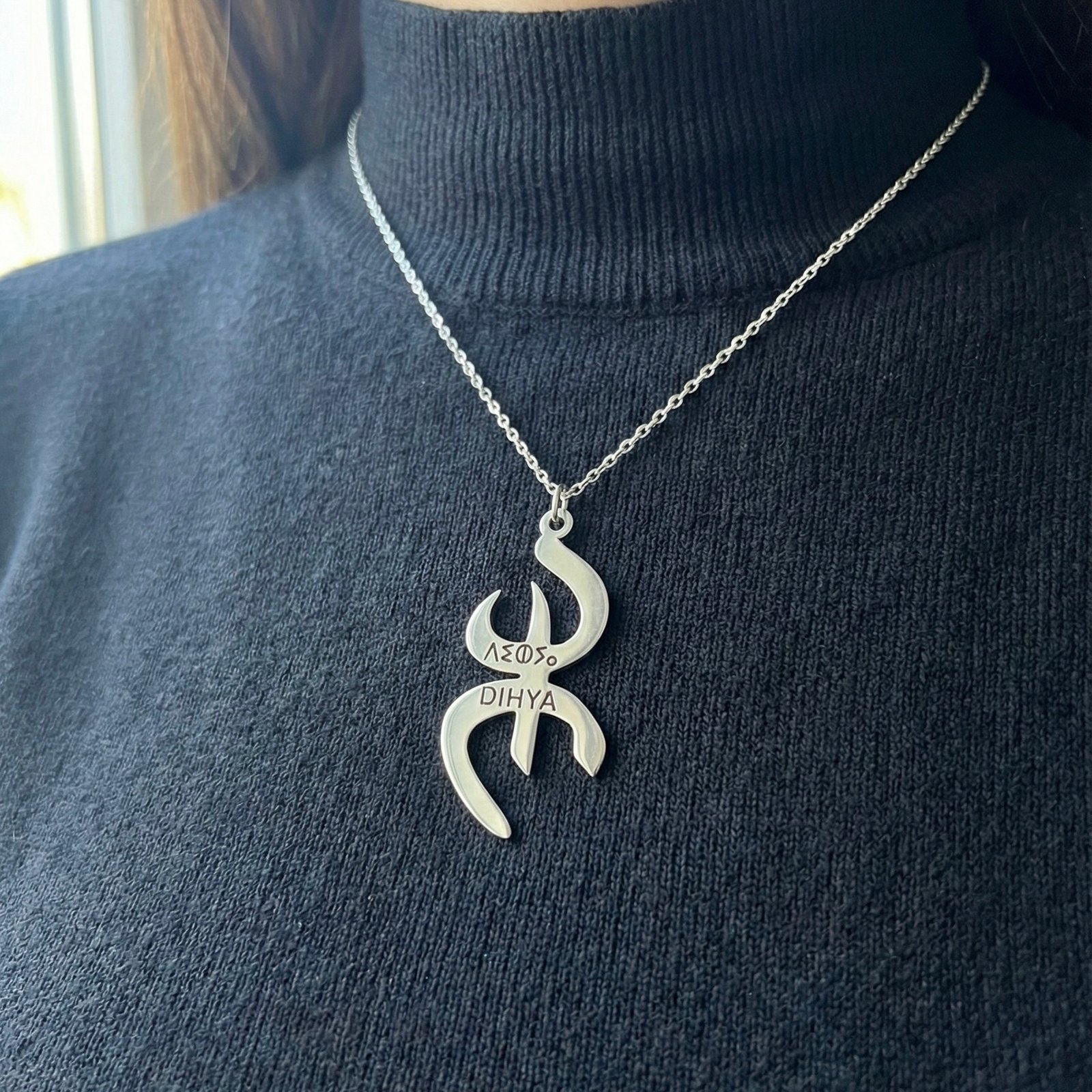 Inspiré des lettres ancestrales Tifinagh, son design fluide évoque la continuité, la force et l’harmonie.